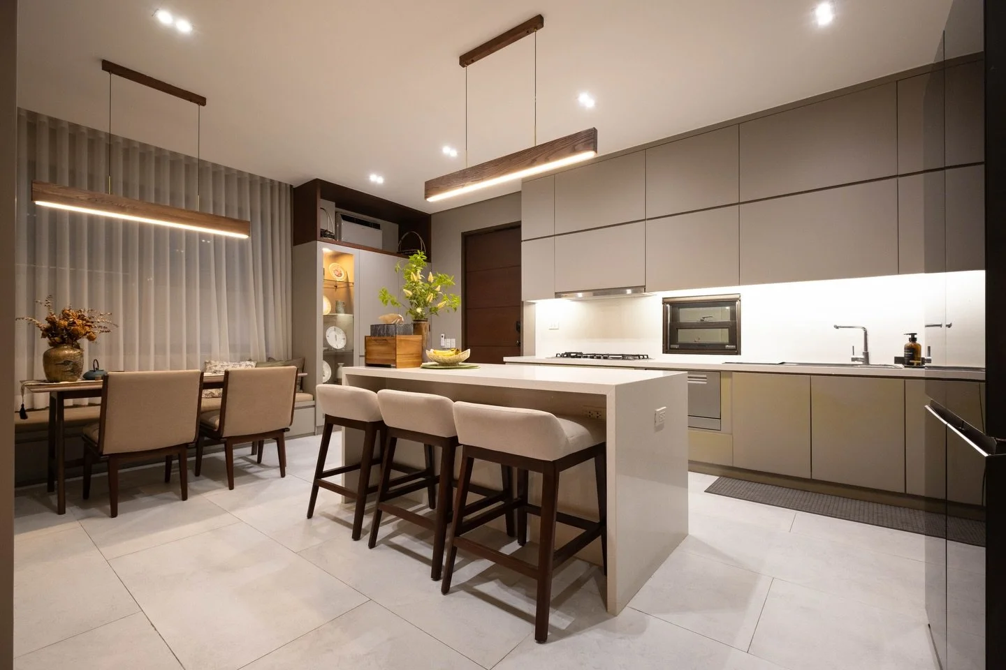 If the kitchen was just the beginning of this condo’s transformation, the living and dining areas are where the story truly unfolds. Designed around a casual lifestyle, these spaces balance comfort and function with thoughtful details such as a custom coffee counter, an extendable dining table, and a sofa made for movie nights. Every corner was shaped with care, turning an empty layout into a warm and intentional home.
