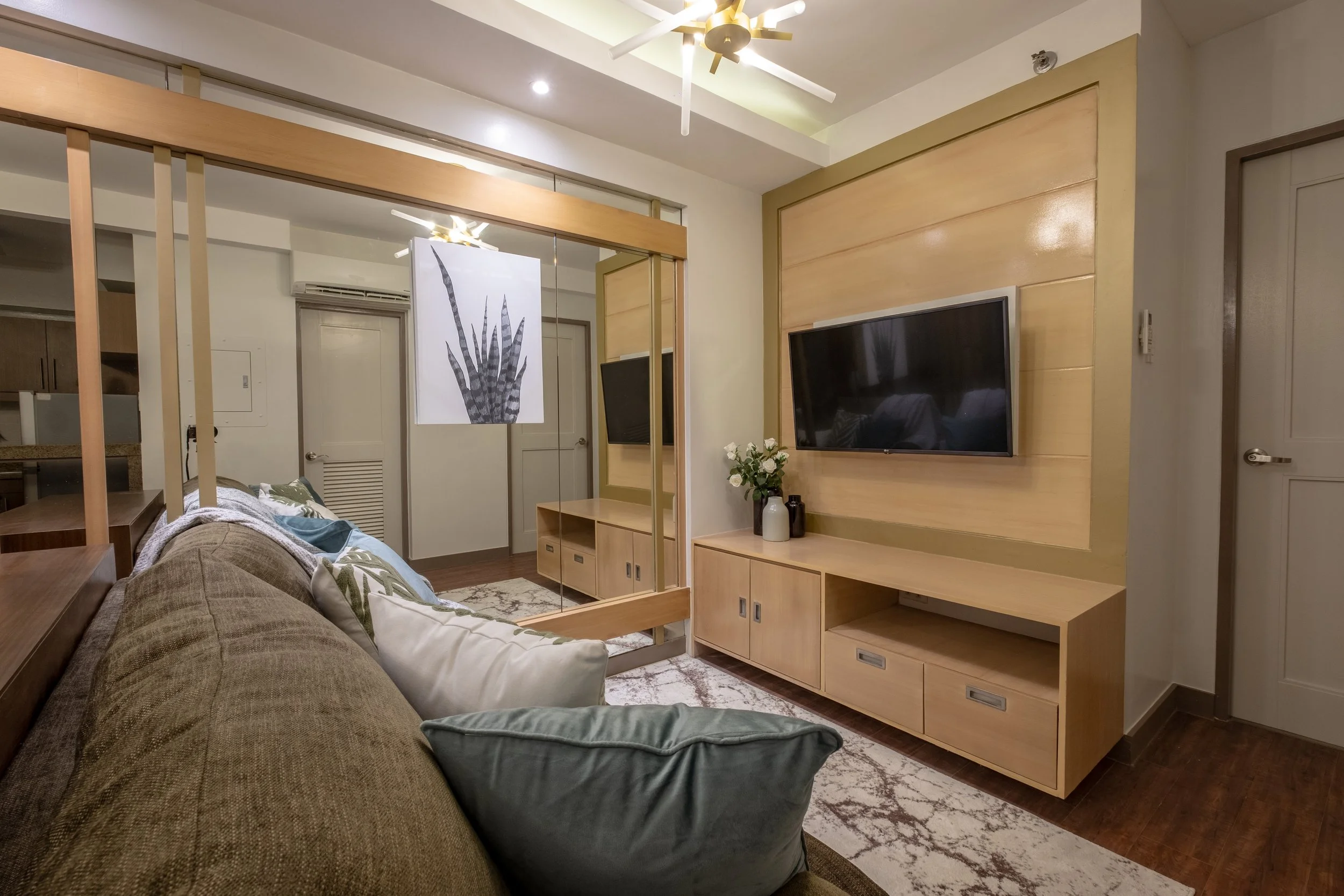 A 60 sq.m. unit renovated to serve as a welcoming guest home for family and friends. The updated design refreshes the space with comfort and style, creating a warm setting for memorable stays.