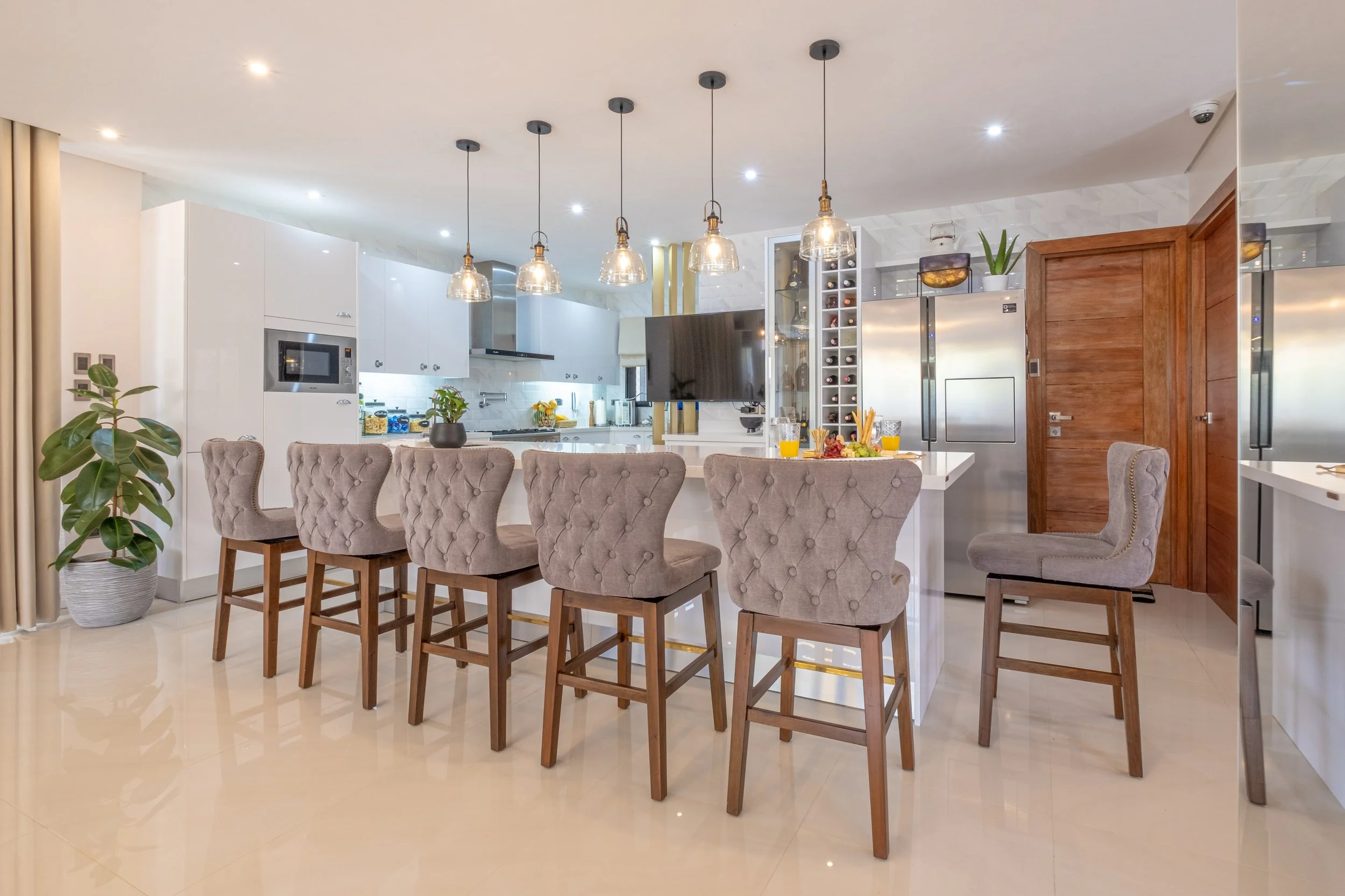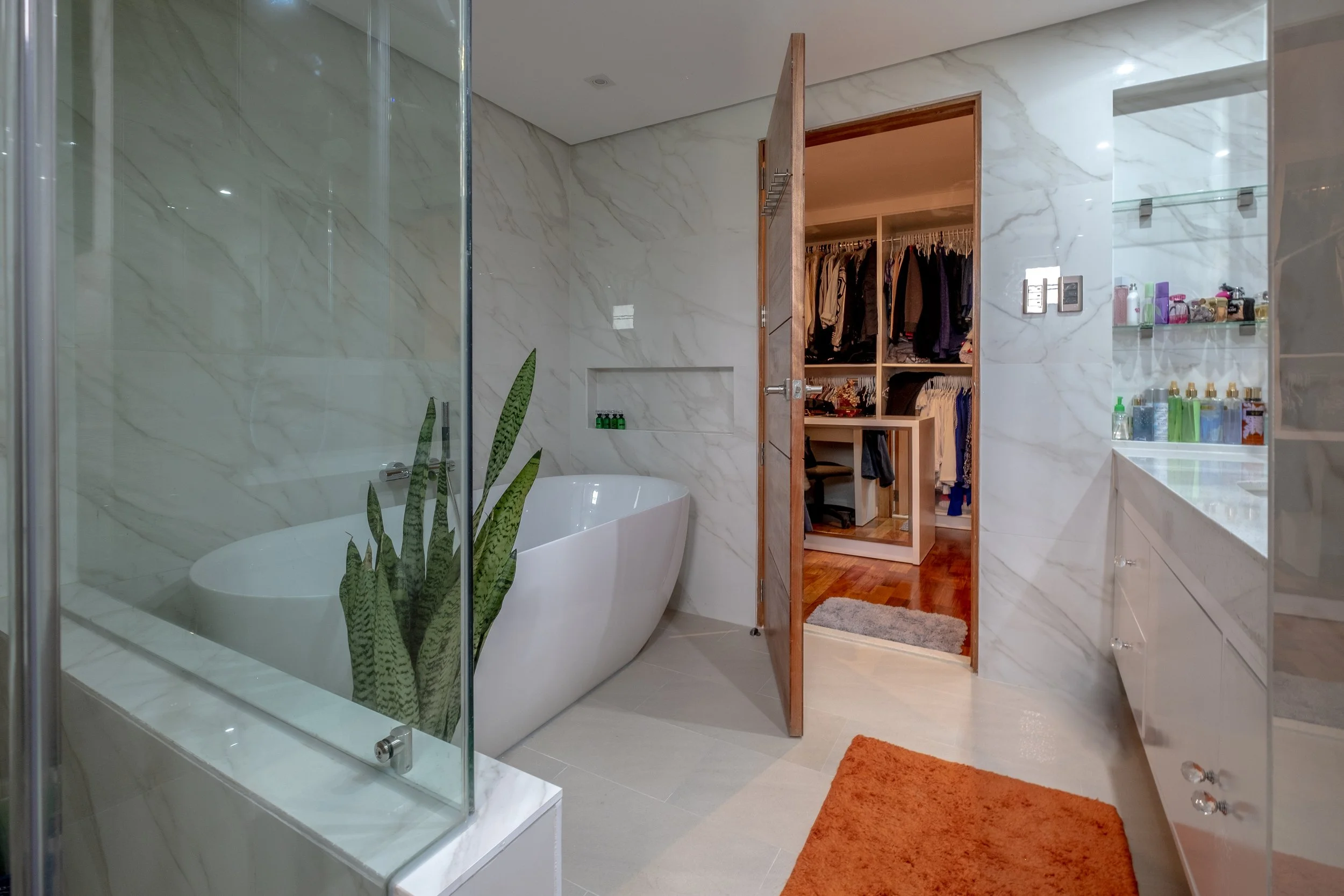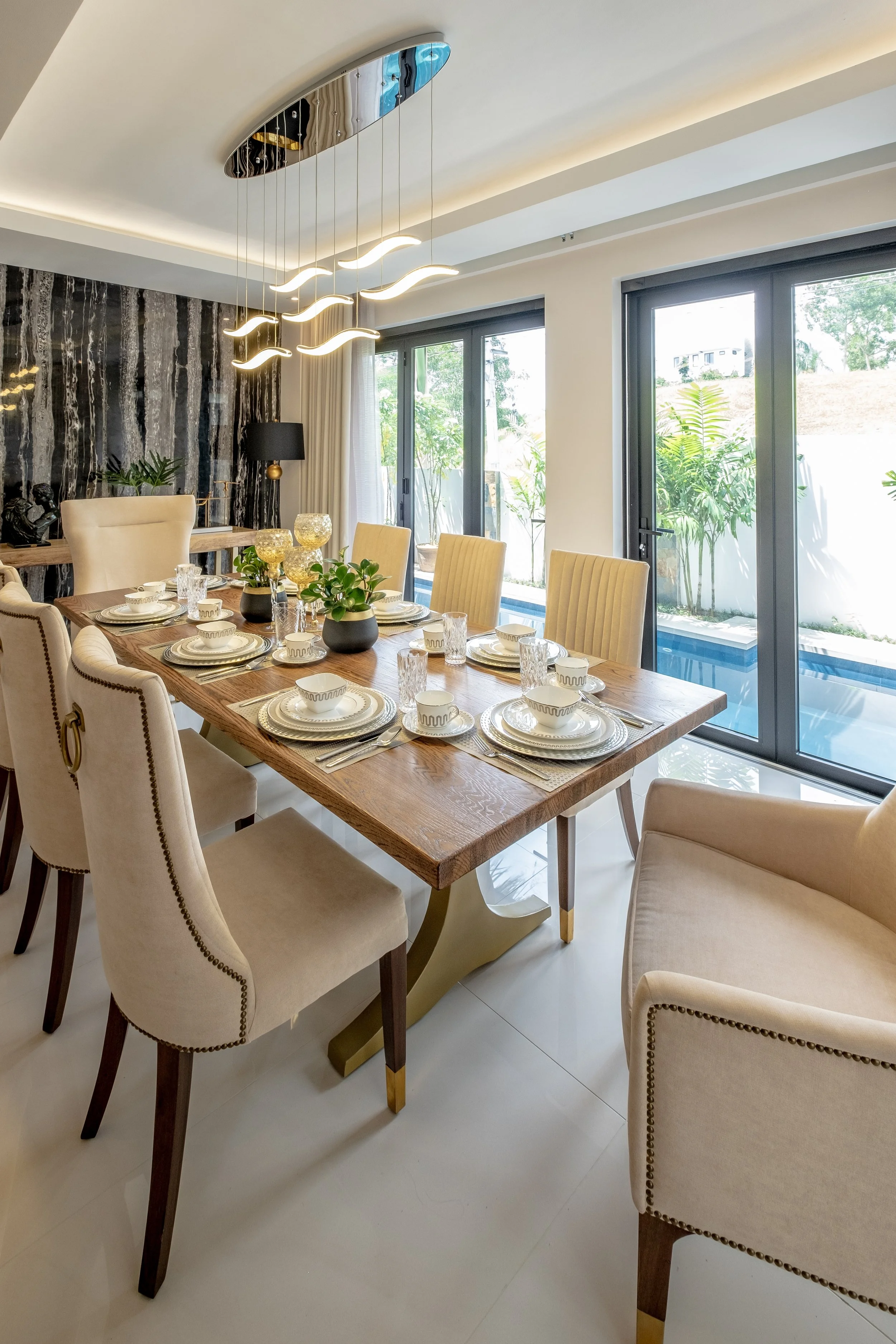 A 300 sq.m. residence combining sleek finishes with warm accents for a modern yet inviting feel. From the luxurious powder room to the spacious living area, every detail is thoughtfully curated to create a refined home that balances style and comfort.