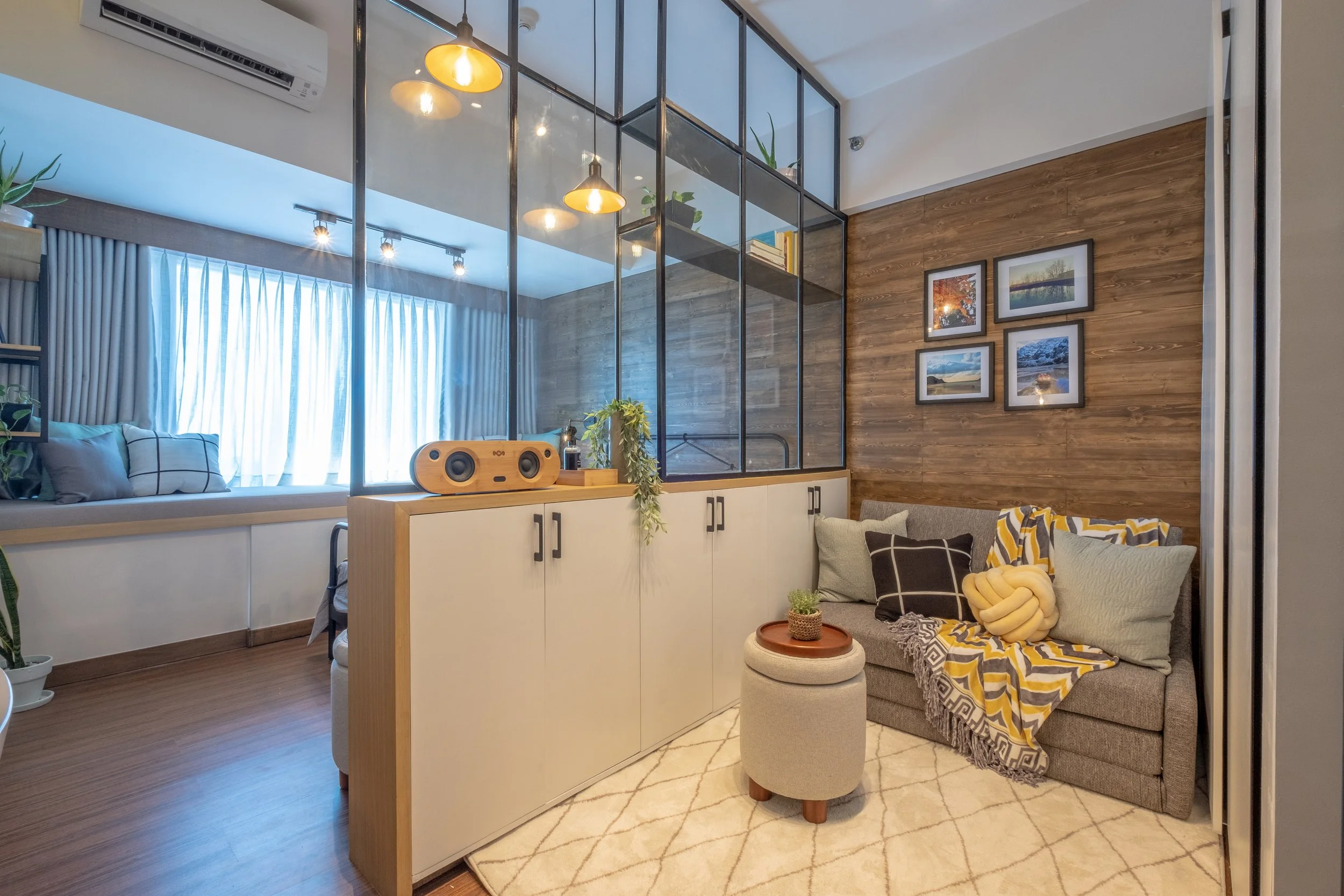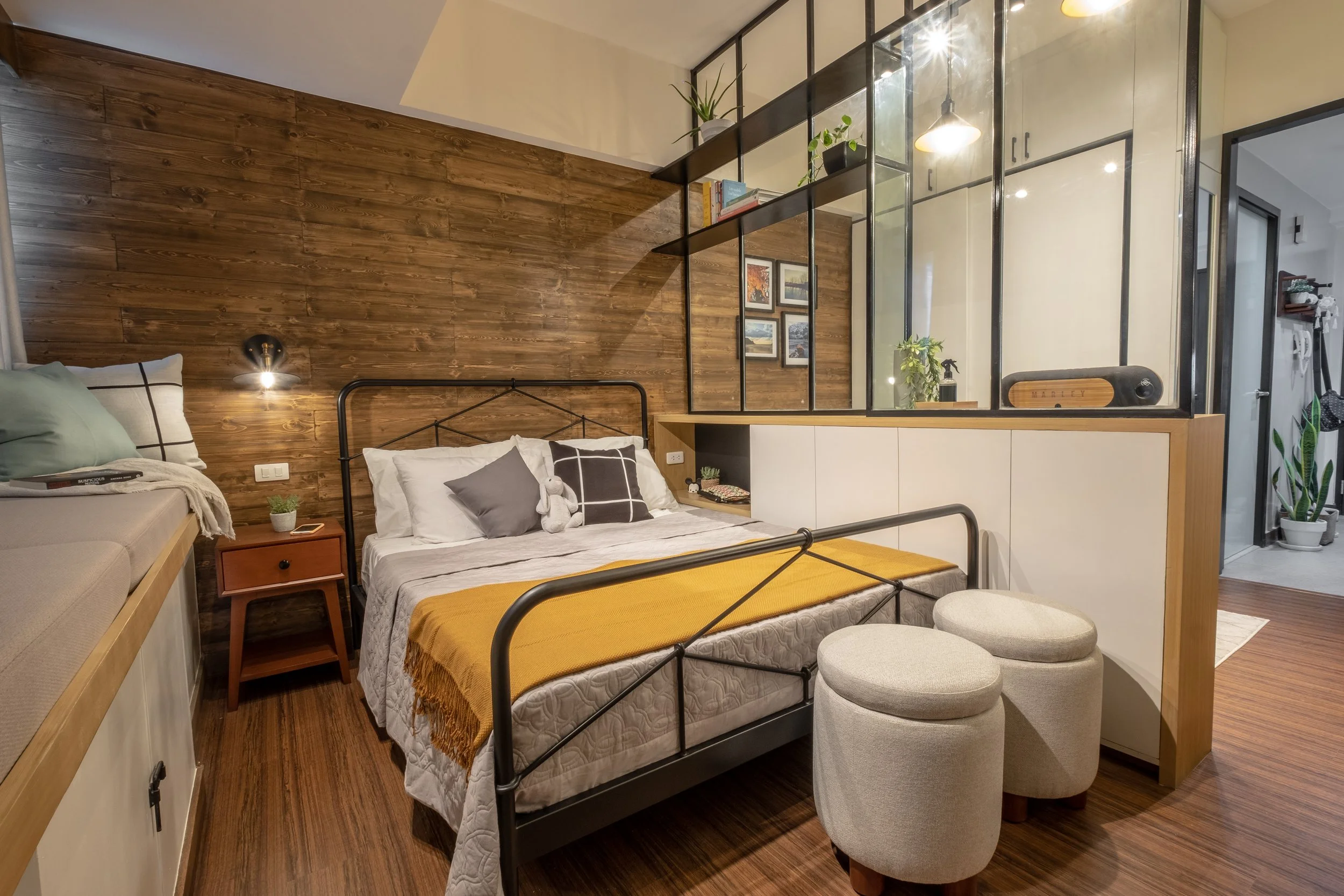 A 35 sq.m. one-bedroom unit designed to make the most of every inch, blending rustic charm, cottage warmth, and a hint of industrial edge. Thoughtful storage solutions and textured finishes transform this compact space into a welcoming home full of character and heart.